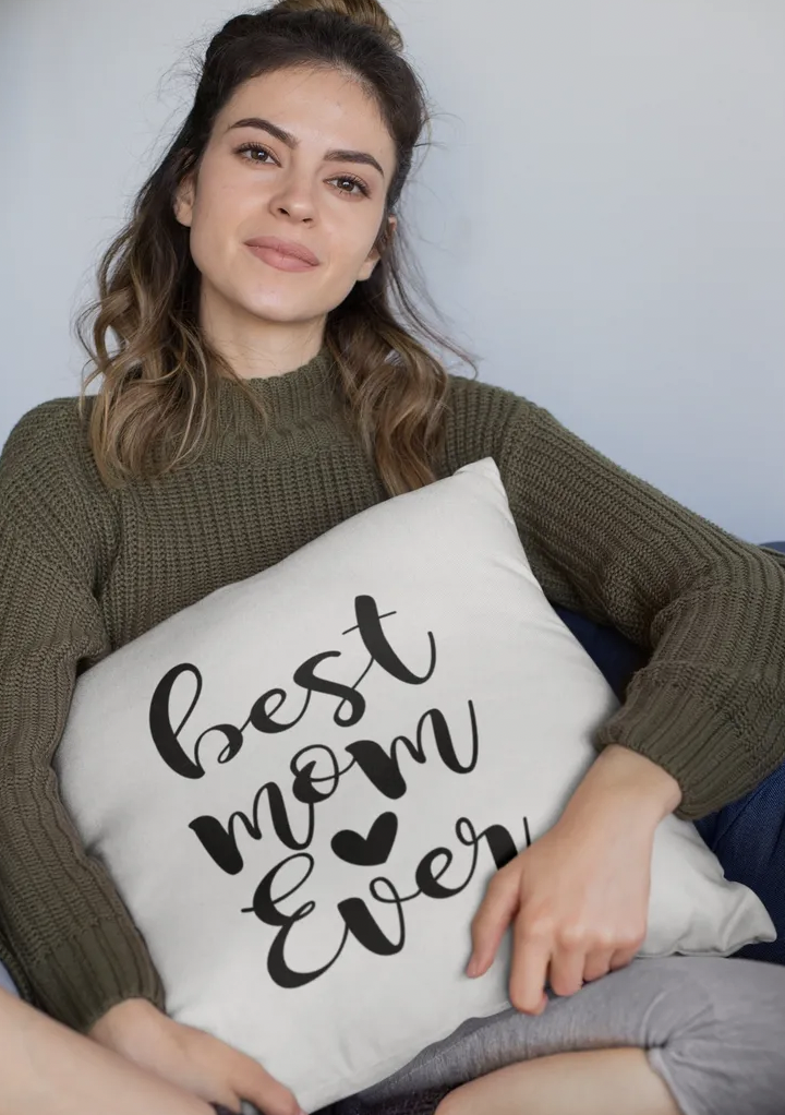 Shipping calculated at checkoutIntroducing our “Best Mom Ever” pillow, a heartfelt and affirming design that celebrates the incredible love and dedication of mothers. This shirt features the uplifting phrase “Best Mom Ever” displayed prominently, serving as a reminder of the special bond and immeasurable impact that you have as a mother.