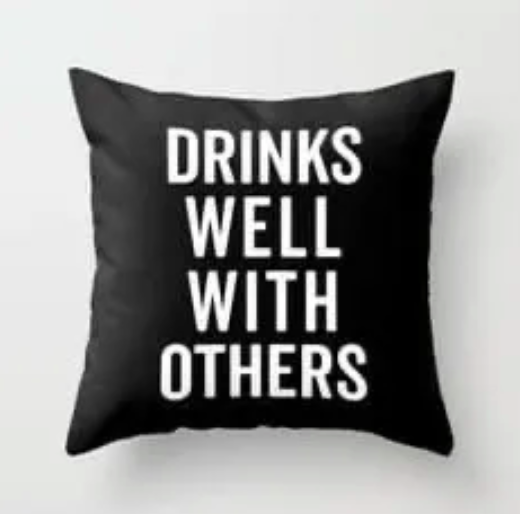 Shipping calculated at checkoutCheers to a good time and a touch of humour with our “Drinks Well With Others” pillow. This delightful statement showcases your social side and love for enjoying drinks with friends and family.