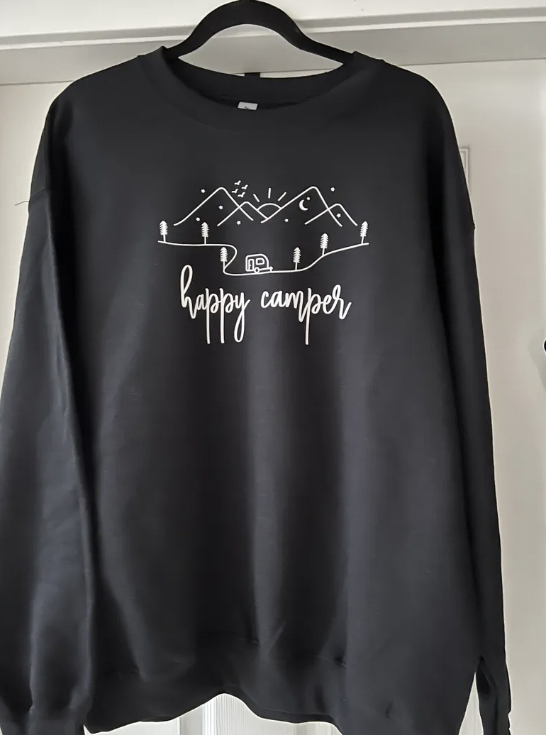 Shipping calculated at checkoutIntroducing our “Happy Camper” shirt, a delightful expression of the joy and contentment found in the great outdoors. This shirt embodies the carefree spirit of those who find solace and happiness amidst nature’s beauty.