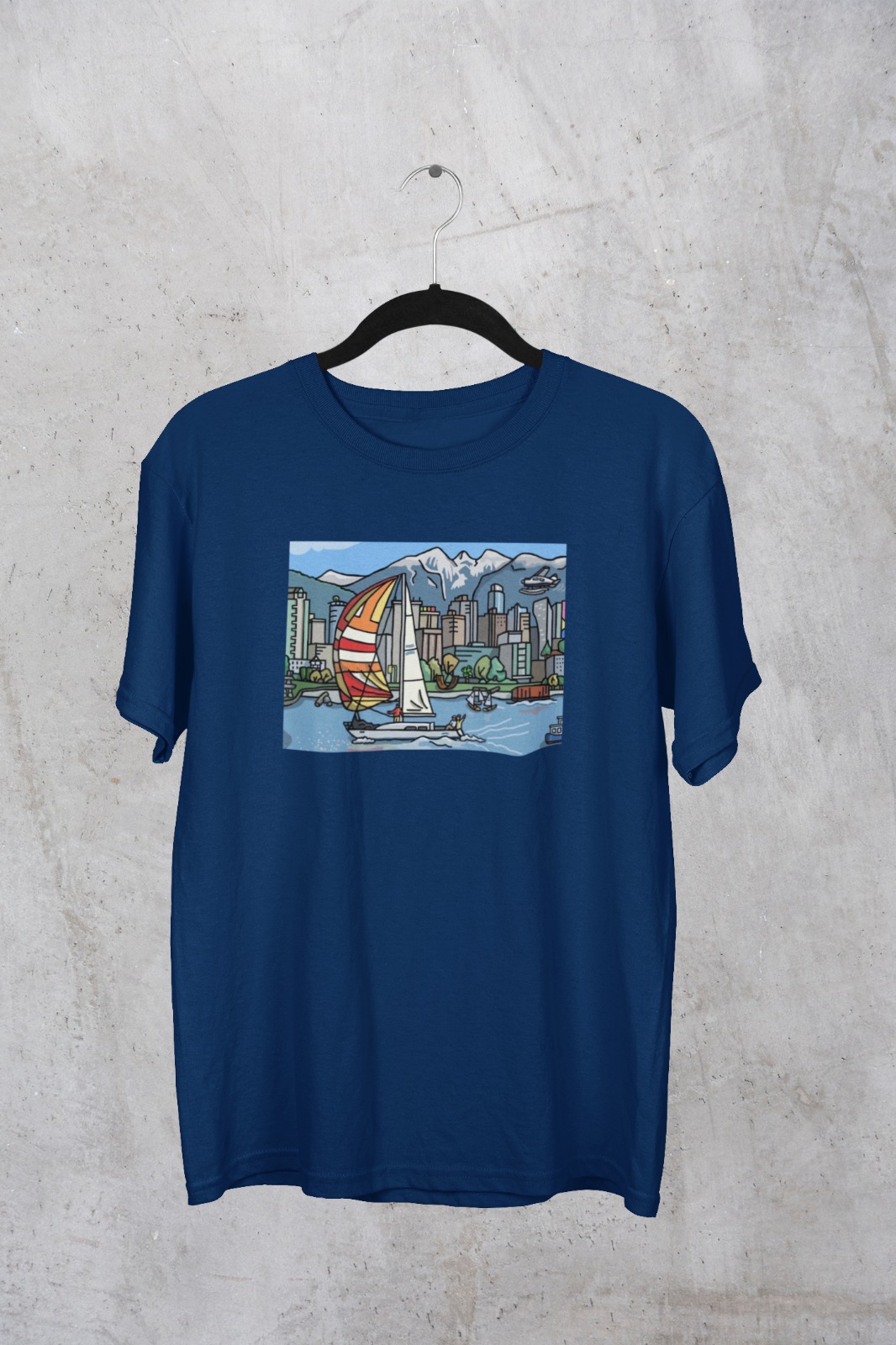 Welcome to Vancouver’s English Bay. The mountains, the architecture, the art, and the barge!