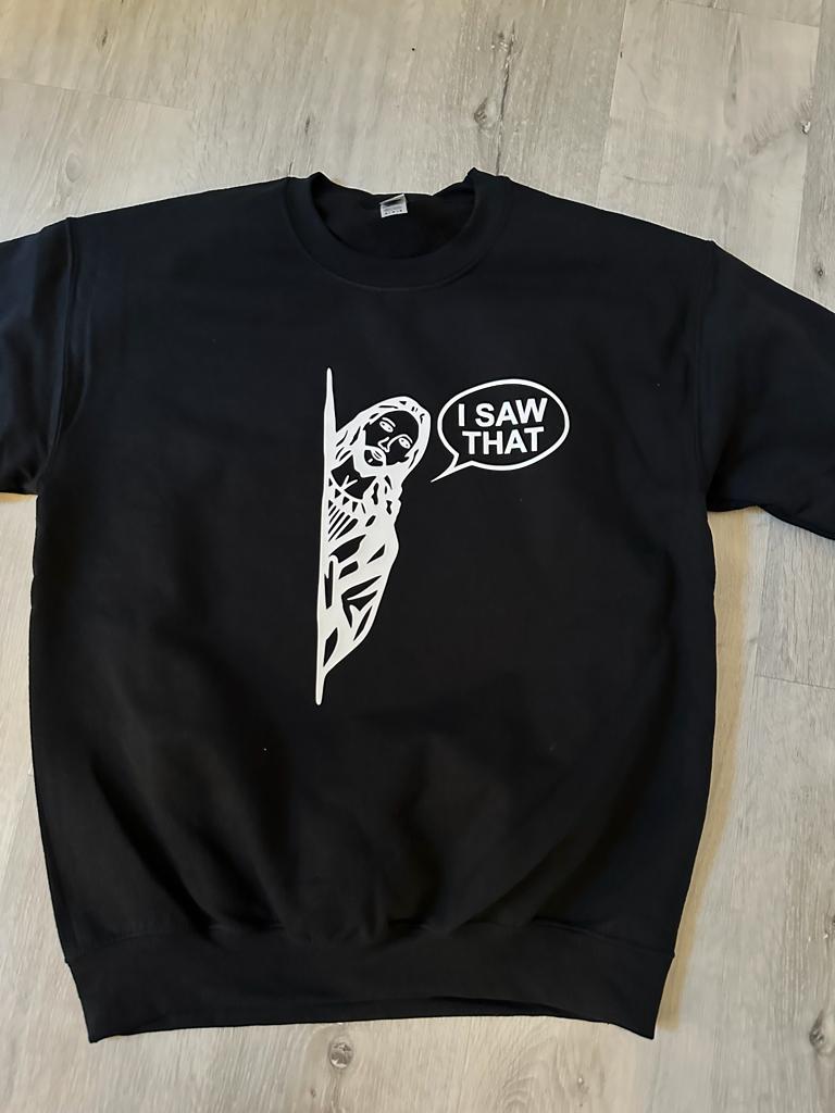 Elevate your sense of humour with our exclusive ‘I Saw That’ shirt, showcasing a playful depiction of Jesus himself. With a mischievous twinkle in his eye, Jesus captures those moments you thought went unnoticed.