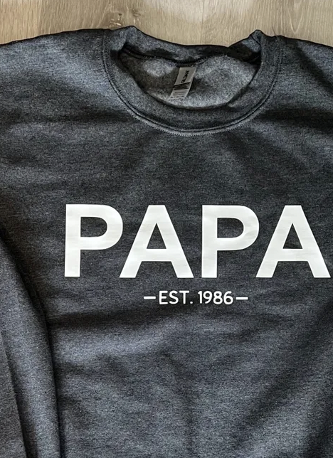 Shipping calculated at checkoutIntroducing our “Papa Est.” shirt, a customizable tribute to the cherished role of being a papa. This shirt allows you to personalize it with your own date of establishment, making it a truly unique and meaningful piece. Whether you’re celebrating the birth of your child or the moment you became a proud papa, this shirt serves as a reminder of that special milestone.