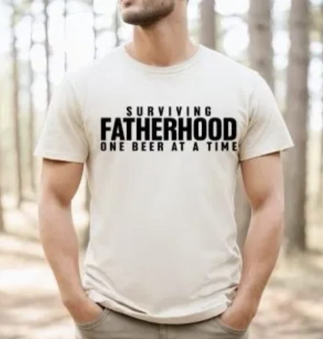 Shipping calculated at checkoutIntroducing our “Surviving Fatherhood One Beer at a Time” shirt, a humorous and relatable tribute to the joys and challenges of navigating the journey of fatherhood. This shirt playfully acknowledges that sometimes, a well-deserved beer can provide a momentary escape and a chance to recharge. It’s the perfect attire for dads who can appreciate the balancing act of parenting. Wear it proudly and let the world know that you’re embracing the adventure of fatherhood with a sense of humour.